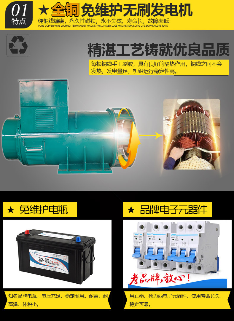 勵磁方式 | 無刷自勵,AVR自動電子調(diào)壓 |